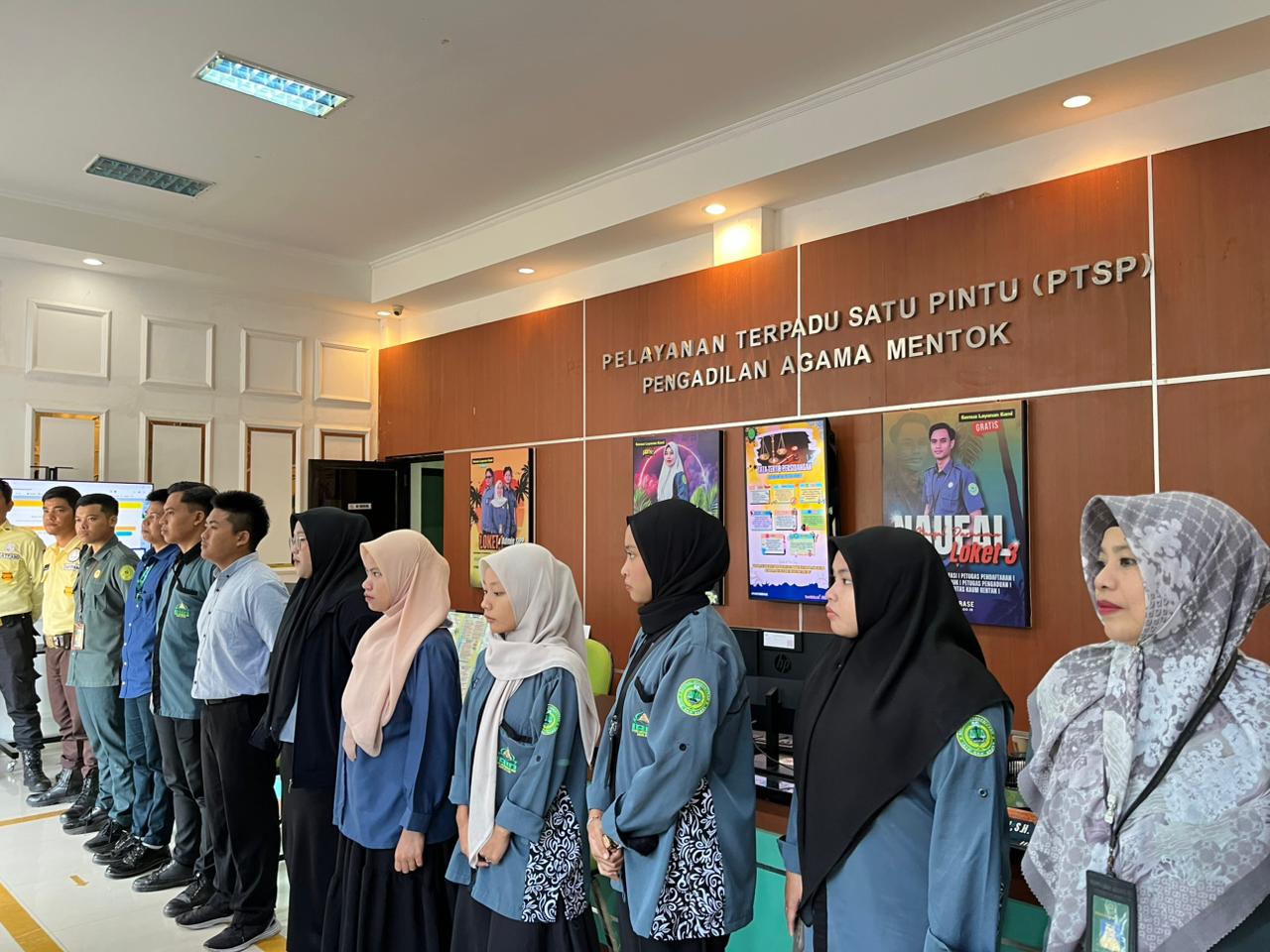 www.pa-mentok.go.id Dalam upaya konsistensi memberikan pelayanan prima bagi masyarakat pencari keadilan, pada Selasa, 10 Februari 2026 Pengadilan Agama Mentok menggelar briefing pagi yang ditujukan kepada seluruh garda terdepan pelayanan. Kegiatan ini dipimpin Bapak Hakim Arie Maulana, S.H. Briefing yang berlangsung di area PTSP tersebut diikuti oleh petugas Pelayanan Terpadu Satu Pintu (PTSP), pers Pos Bantuan Hukum (Posbakum), petugas keamanan (Satpam), serta para mahasiswa dan mahasiswi yang sedang melaksanakan program magang di PA Mentok.