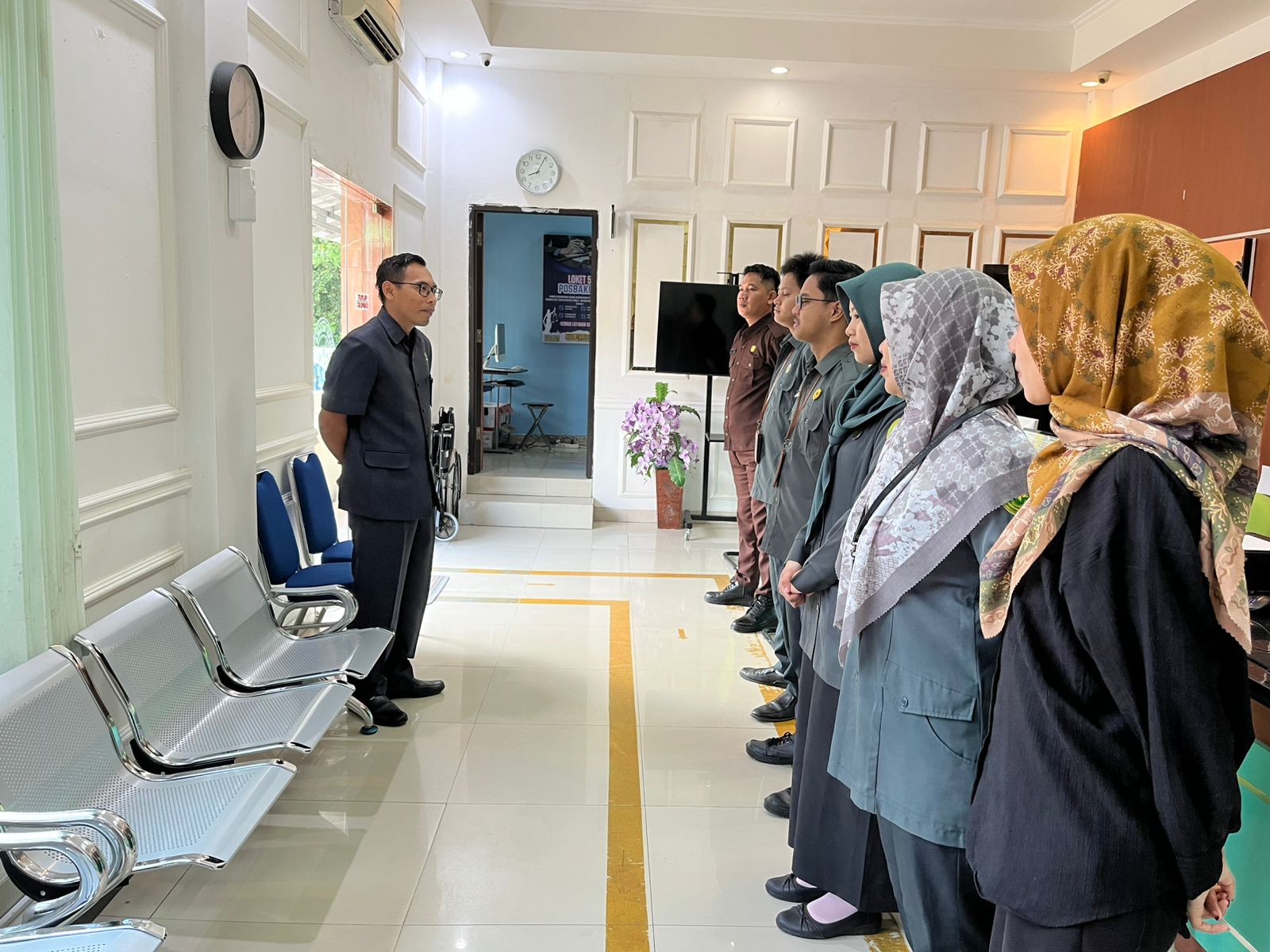 Briefing Pagi Pengadilan Agama Mentok Ingatkan Pentingnya Kerapian Ruang PTSP dan Komunikasi Kerja